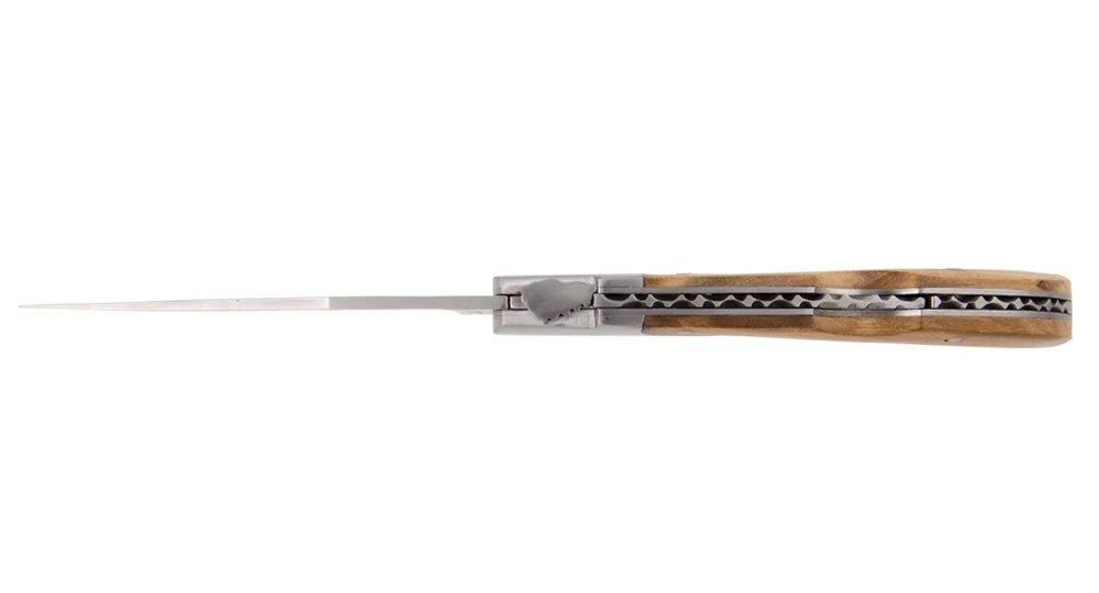Couteau Corsica : manche en bois d’Olivier, mitre stylisée et système lock-back