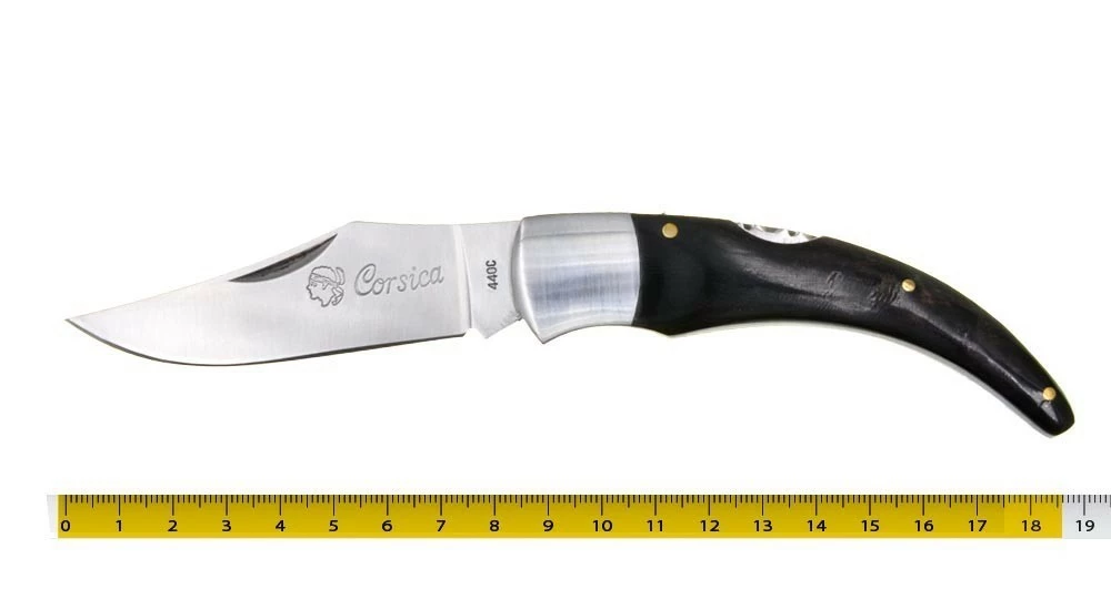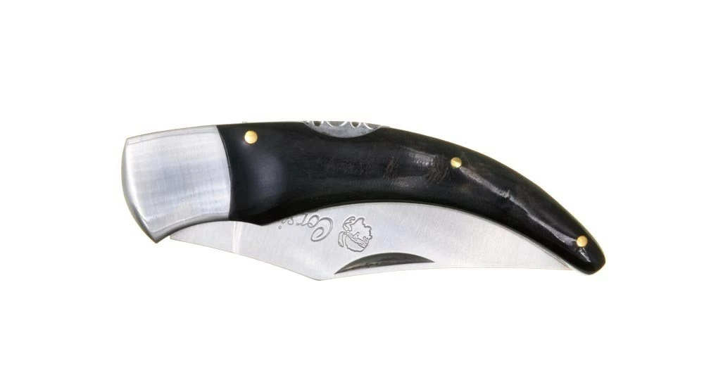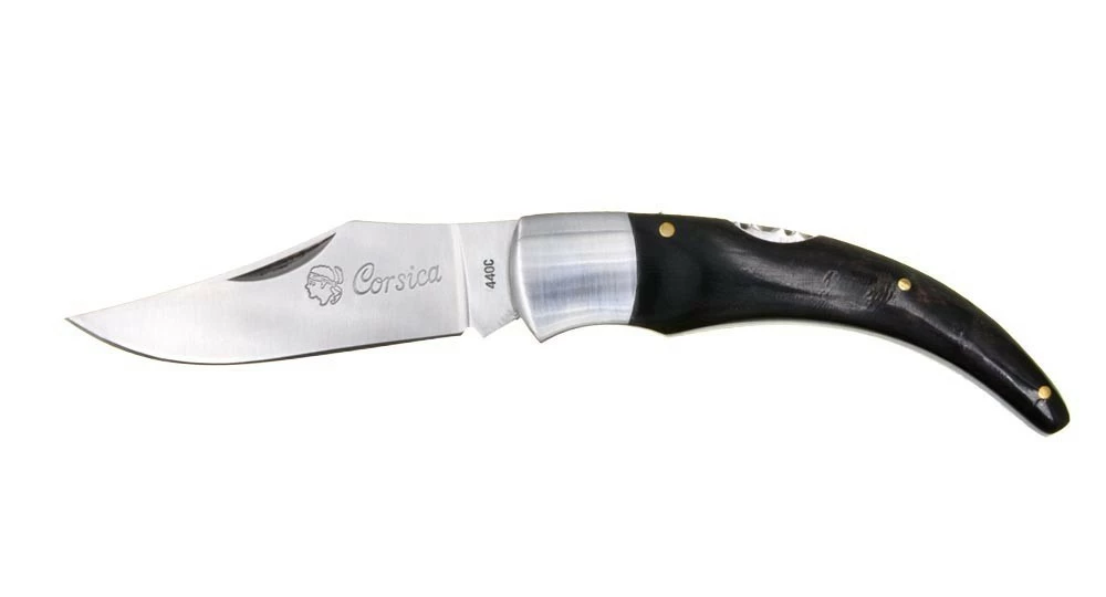 Nos couteliers corses ont collaboré à la réalisation de cette collection de couteaux de berger. Cette version avec système de sécurité Lock back est estampillée « Corsica » sur la lame et elle est disponible dans 2 dimensions :