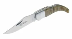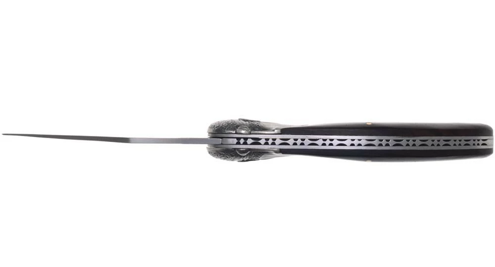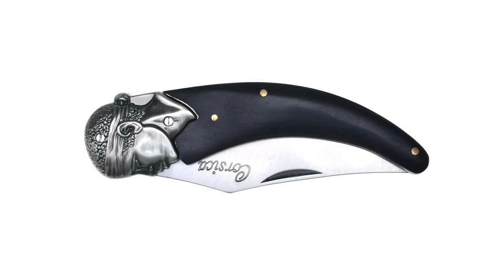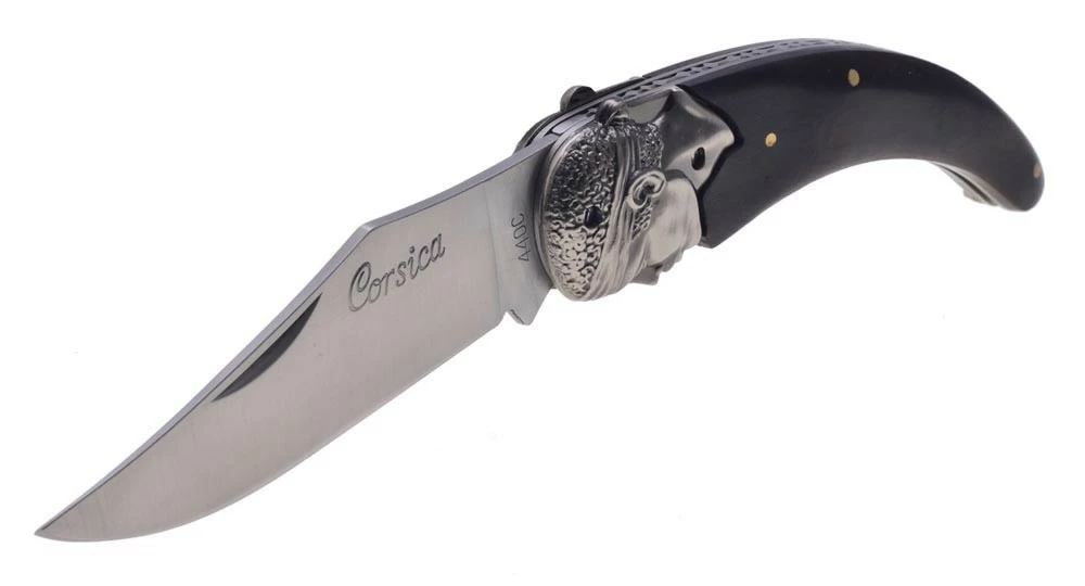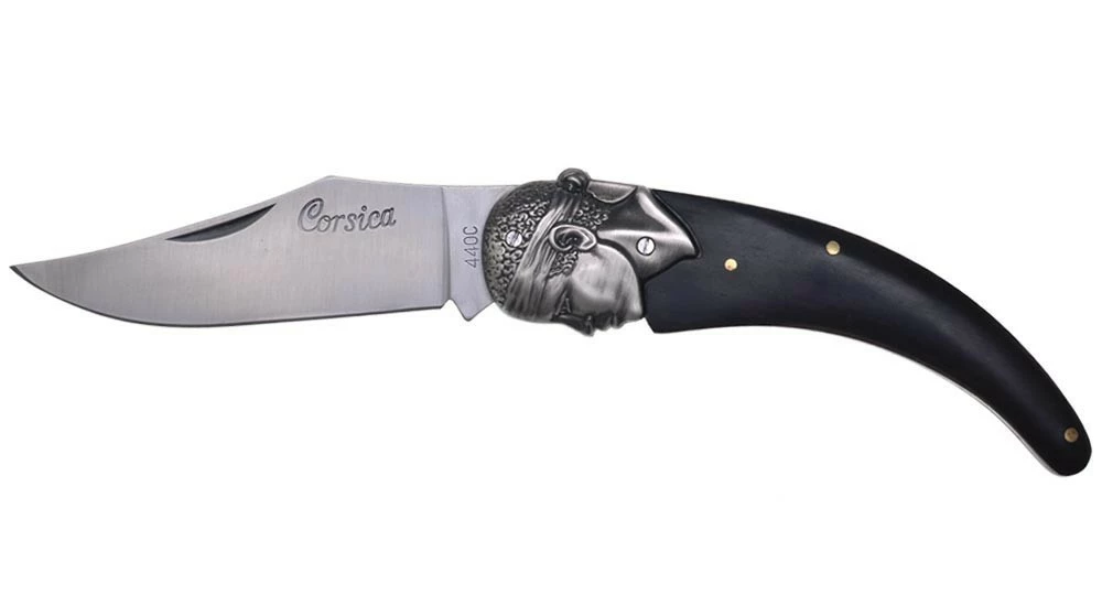 Recréé en collaboration avec des couteliers Corses, ce couteau berger est un couteau de bonne facture gravé « Corsica » sur la lame. Le Berger en Noyer a fière allure avec sa mitre en forme de « Tête de Maure » et son ressort guilloché. C’est un beau modèle classé Hors Série, bien fini il est très agréable en main. Un bon couteau de poche avec du style à offrir ou à s’offrir !