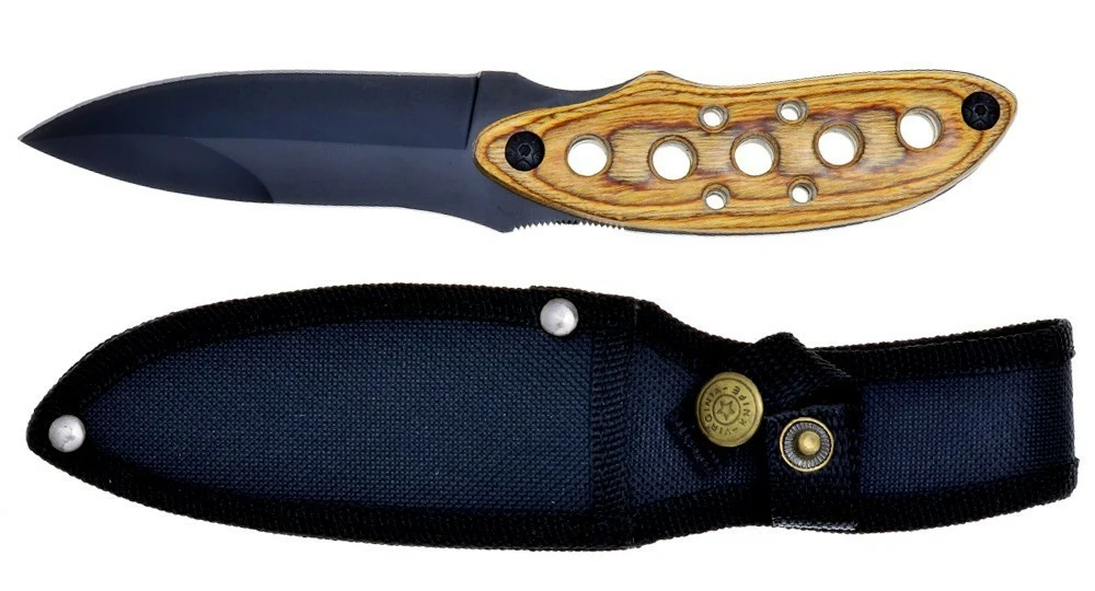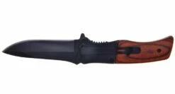 Ce couteau à lame fixe noire est particulièrement intéressant par la forme de son manche ergonomique qui vous assurera une prise en main optimale. Son manche en packwood, une résine de bois très résistante à l’eau, ne craint pas les intempéries.