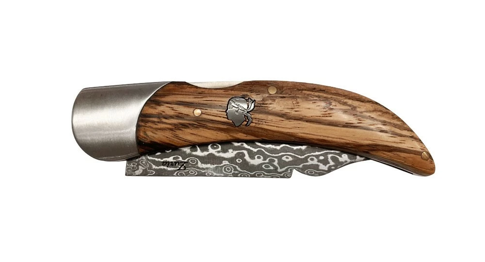 Ce joli couteau Corsica est équipé d’un manche en Chêne décoré d’une « Tête de Maure » en acier. Sa mitre arrondie et sa lame Damas à tarabiscot mettent en valeur ce modèle. Equipé d’un système de sécurité Lock-back, vous ne pourrez plus vous passer de ce couteau bourré de qualités.