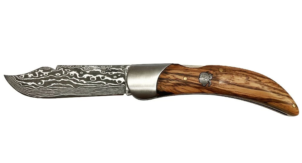 Couteau Corsica : Manche en Chêne, lame Damas et lock-back
