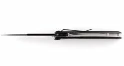 – La lame a une épaisseur de 3 mm au talon. Le dos de cette lame est enjolivé d’un guillochage. Cette lame est en acier inoxydable 440 poli avec un marquage en creux.