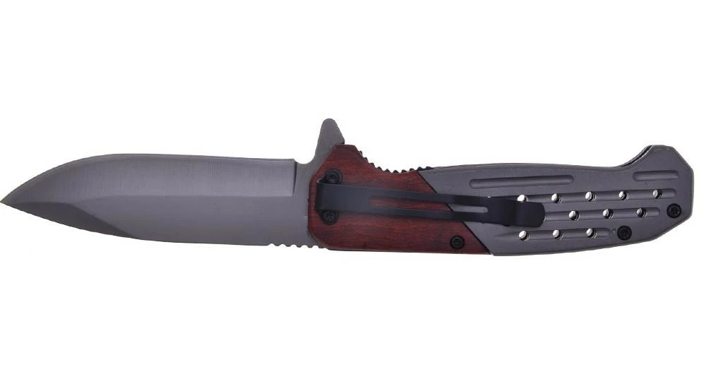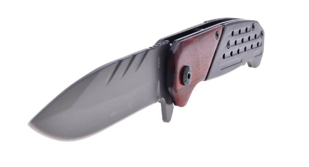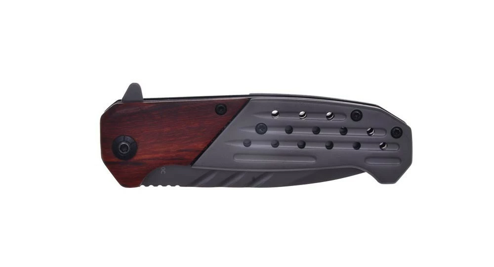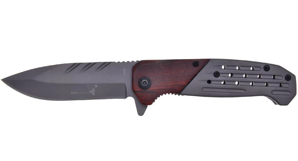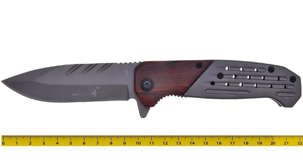 Le TEMP i TECH 1504 est adapté aux grandes mains car il mesure 22 cm ouvert et 12 cm fermé. Sa lame fait 9.5 cm de long, elle est en acier inoxydable 440C couleur titane comme le manche.