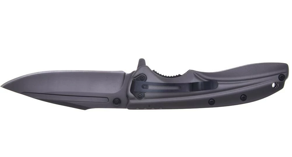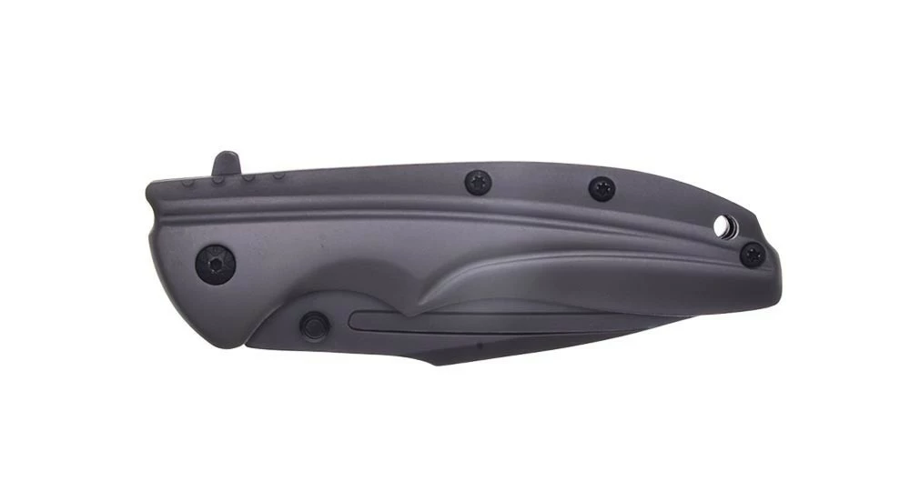 Ce couteau semi-automatique convient aux grandes mains puisqu’il mesure 13 cm fermé, 22.5 cm ouvert et sa lame, en acier inoxydable 440C, 10 cm de long.