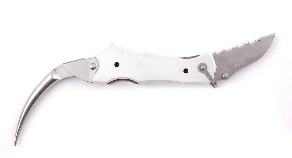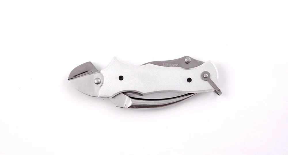 Couteau Virginia blanc pour voilier avec pince et griffe.