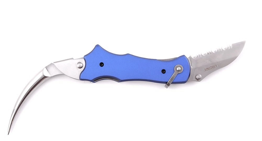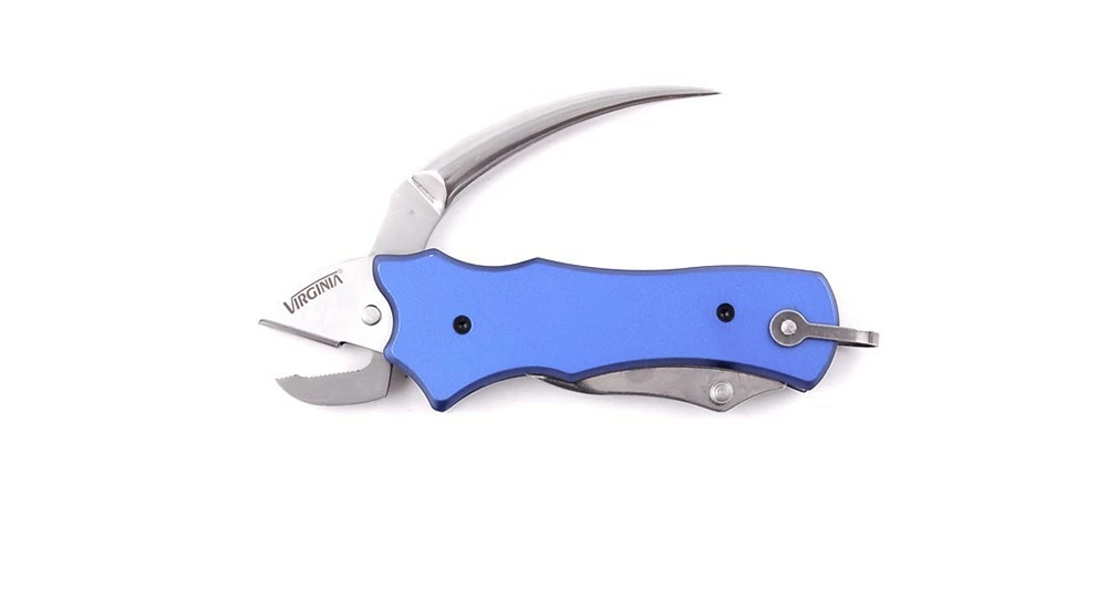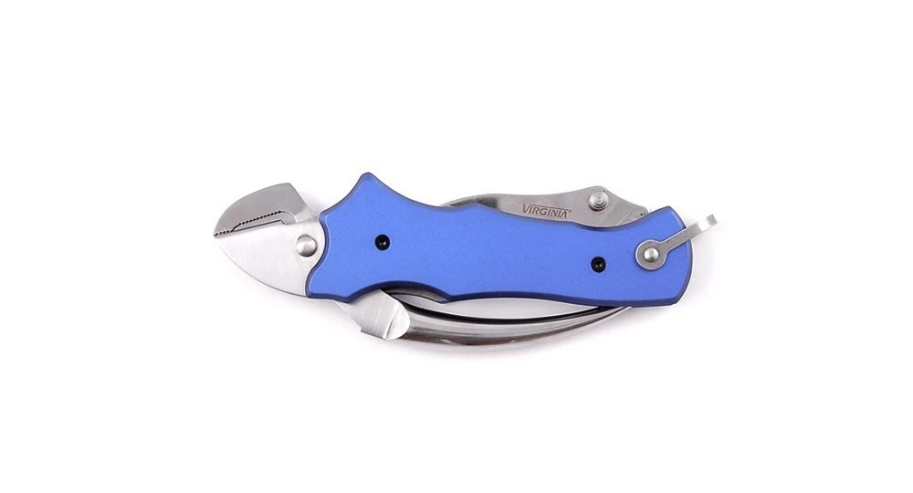 Couteau Virginia bleu pour voilier avec pince et griffe.