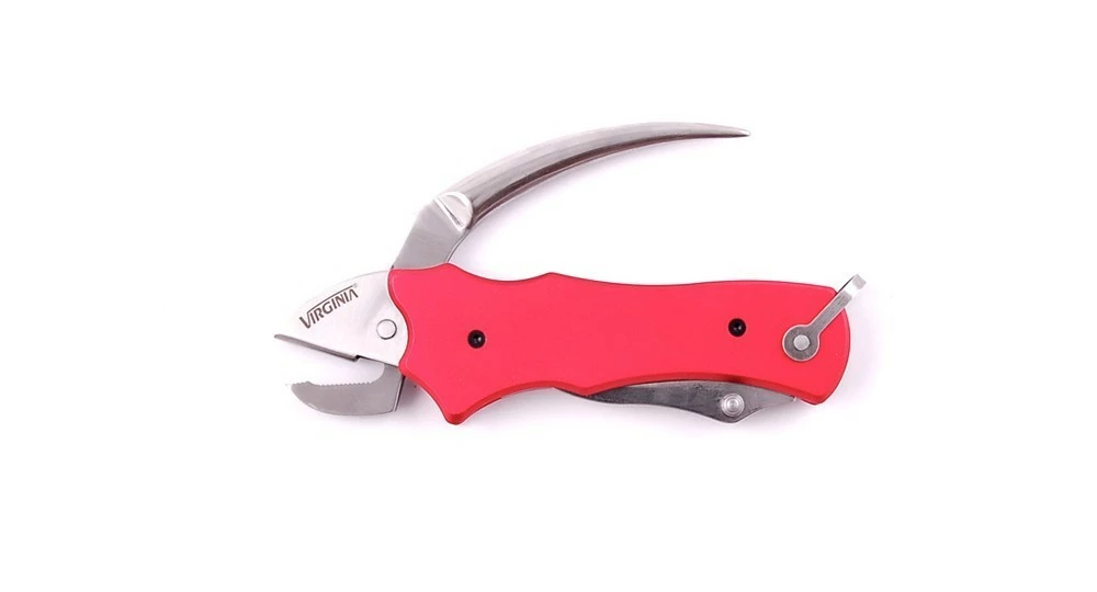 Couteau Virginia rouge pour voilier avec pince et griffe.