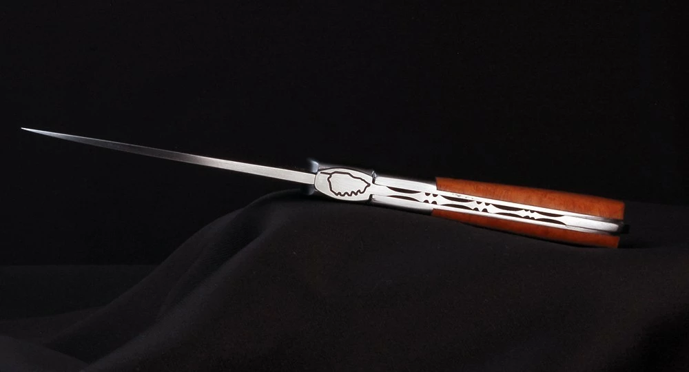 Ressort et Technique : Blocage de lame à pompe arrière (lock-back), butée fixe pour la lame : celle ci ne frappe pas le fond du couteau à la fermeture