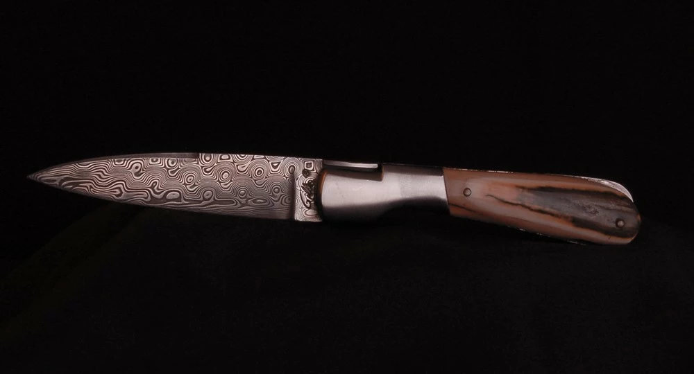 Couteau « fait main » : Le Pialincu en Ivoire de Mammouth fossile et lame Damas