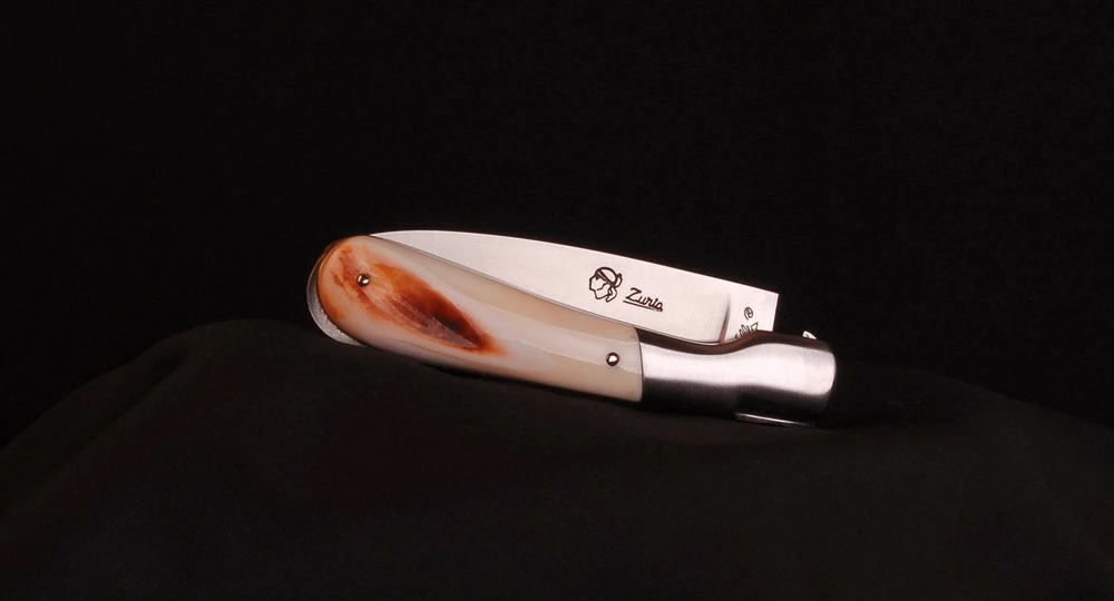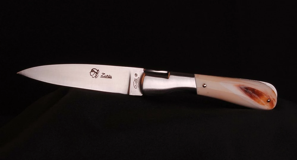 Ce couteau « Pialincu » mesure 10.5 cm fermé, ce qui est rare et adapté aux petites mains notamment celles des femmes. Son mécanisme est composé d’une seule pièce avec un cran de sécurité à l’arrière. Son manche est en bois naturel (olivier, chêne, genévrier, racine de bruyère …), en corne (vache, bélier) ou en os. Sa lame est en acier inoxydable « 14C28N » ou en « RWL 34 ». Il existe des modèles plus prestigieux montés avec une lame « Damas ».