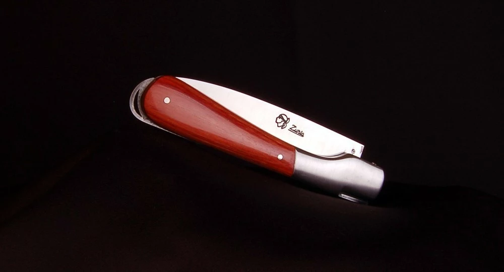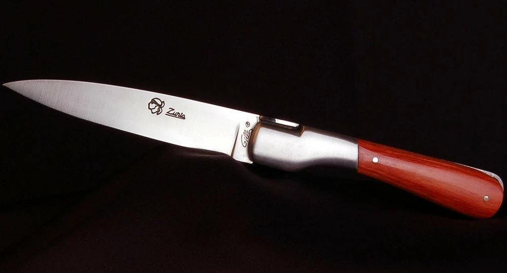 Avec son ouverture très douce et son système de blocage de lame par pompe arrière, la lame ne frappe pas le fond du couteau à la fermeture. Ses finitions dans les moindres détails, en font un couteau très agréable au quotidien : avec son ressort forgé, ciselé et poli à l’intérieur, la Corse gravée, des matières nobles et des aciers de qualité.