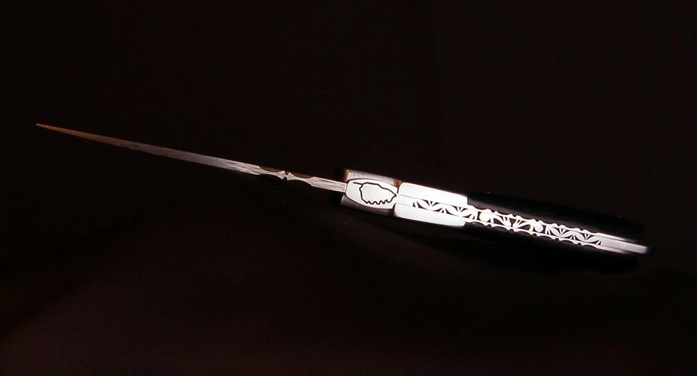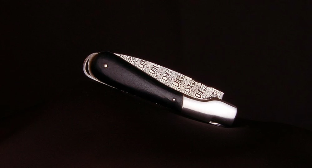 Ce très beau modèle avec son manche en véritable bois d’Ebène et sa lame en acier Damas, fait partie de la Collection haut de gamme du Sperone ! un couteau pliant imaginé et designé en Corse par les couteliers Zuria de Bonifacio en étroite collaboration avec la maison Fontenille Pataud à Thiers et Robert Beillonnet, M.O.F 1997 et 2000.