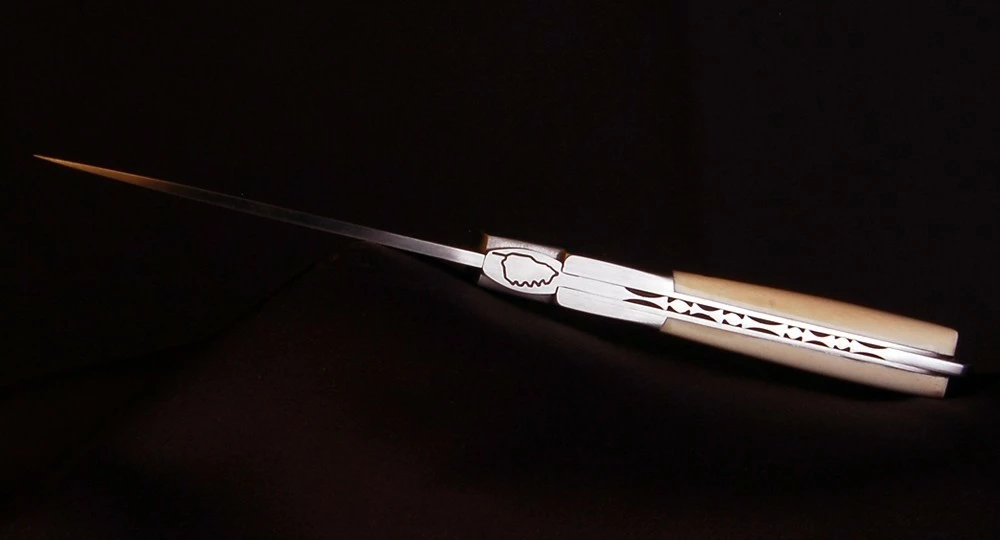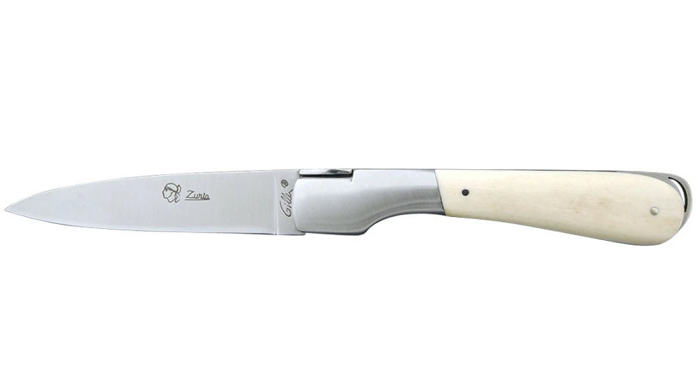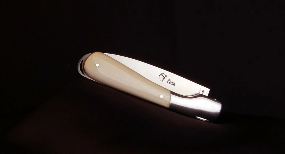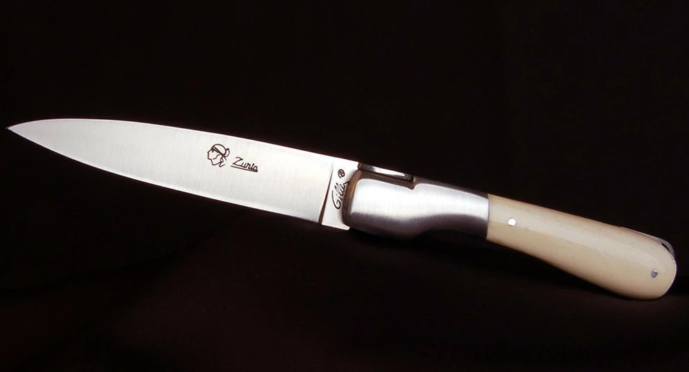 Avec son ouverture très douce et son système de blocage de lame par pompe arrière, la lame ne frappe pas le fond du couteau à la fermeture. Ses finitions dans les moindres détails, en font un couteau très agréable au quotidien : avec son ressort forgé, ciselé et poli à l’intérieur, la Corse gravée, des matières nobles et des aciers de qualité.
