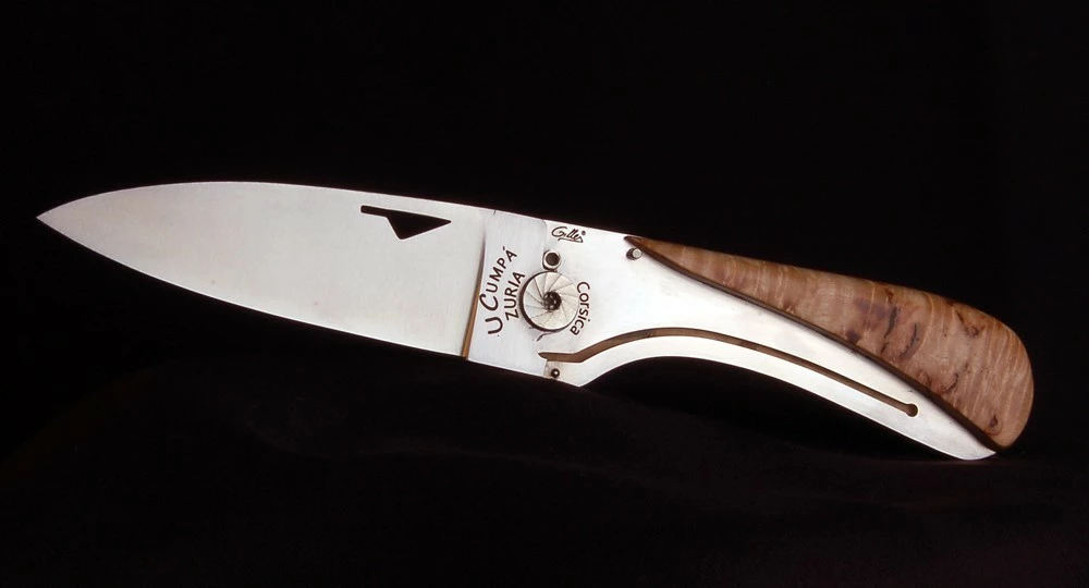 Le Cumpà est un couteau pliant, imaginé et designé par nos soins en Corse, où la technique traditionnelle s’associe parfaitement à un design moderne. Les Couteliers Zuria de Bonifacio ont créé ce modèle avec Gilles® Fontenille Pataud à Thiers. Il a été baptisé « U Cumpà » qui signifie « Le compagnon » en bonifacien.