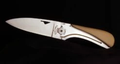 Lame & Platine : lame de 2.50 mm d’épaisseur. Acier suédois 12C27 poli mat. Dureté obtenue après trempe cryogénique : 57Hrc