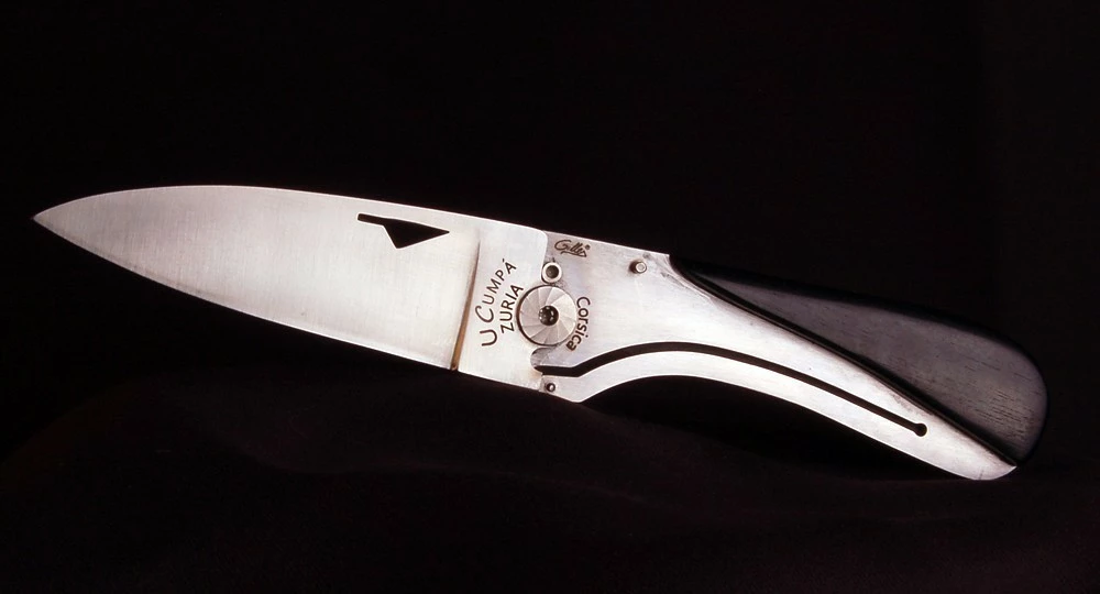 Le Cumpà est un couteau pliant, imaginé et designé par nos soins en Corse, où la technique traditionnelle s’associe parfaitement à un design moderne. Les Couteliers Zuria de Bonifacio ont créé ce modèle avec Gilles® Fontenille Pataud à Thiers. Il a été baptisé « U Cumpà » qui signifie « Le compagnon » en bonifacien.