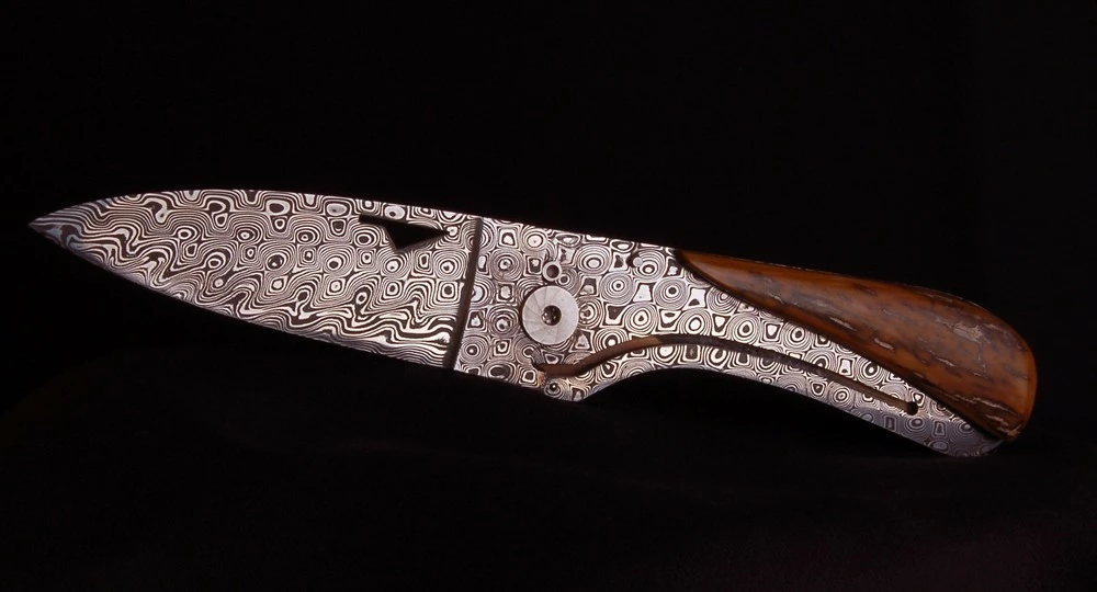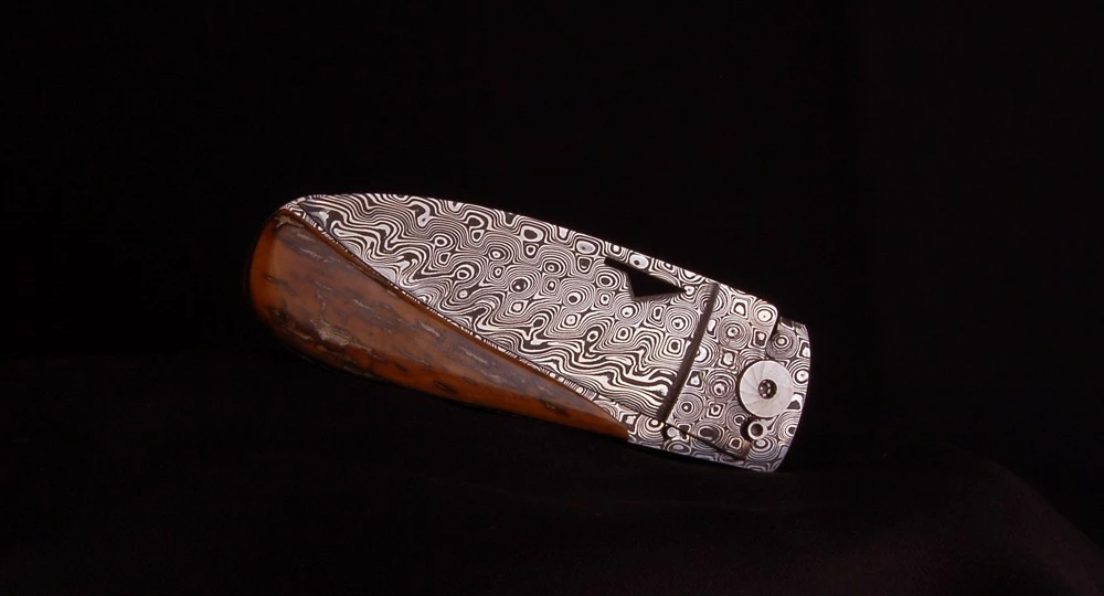 Couteau « fait main » : U Cumpà en Ivoire de Mammouth et lame en Damas Rose