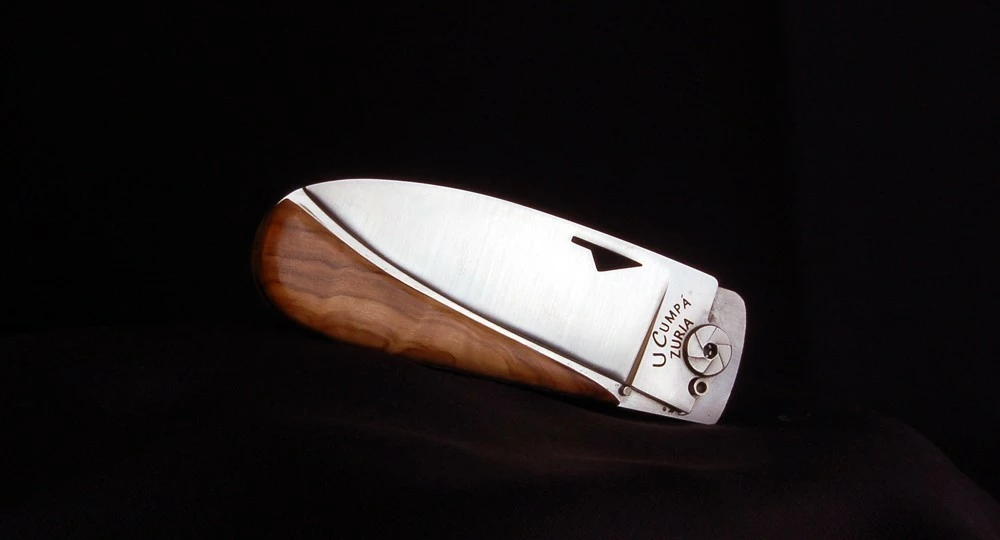 Le Cumpà est un couteau pliant, imaginé et designé par nos soins en Corse, où la technique traditionnelle s’associe parfaitement à un design moderne. Les Couteliers Zuria de Bonifacio ont créé ce modèle avec Gilles® Fontenille Pataud à Thiers. Il a été baptisé « U Cumpà » qui signifie « Le compagnon » en bonifacien.