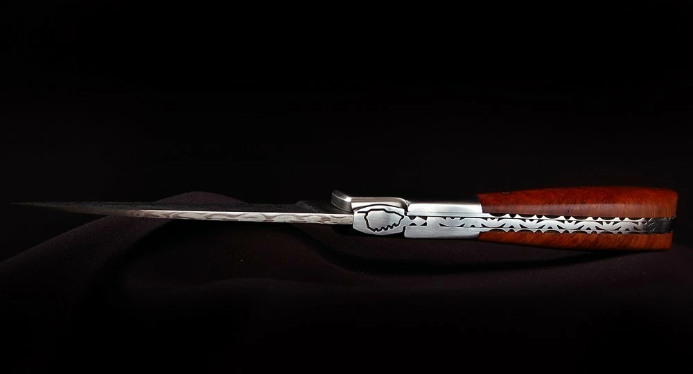 Les différentes parties de cet objet ancestral ont été fabriquées à la main avec une recherche constante de qualité : Ajustage, perçage, façonnage, polissage, contrôle de la tension du ressort et affûtage sont effectués soigneusement en atelier.