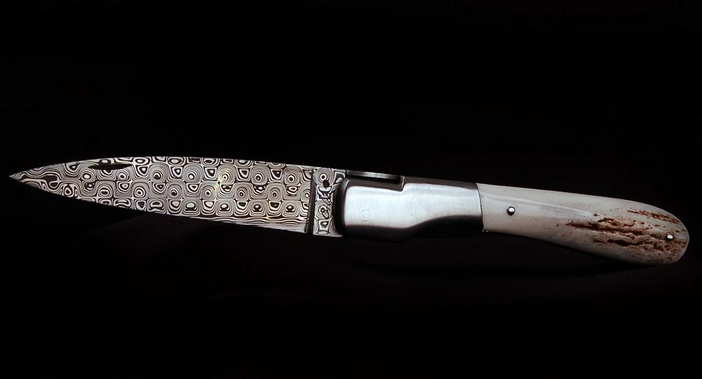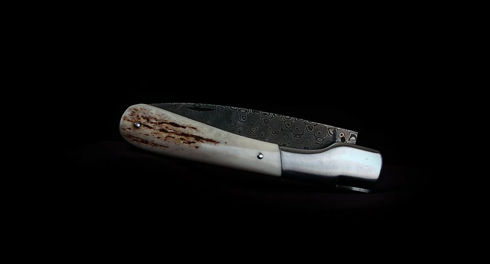 Couteau fait main : La Vendetta Zuria en Bois de Cerf et lame Damas