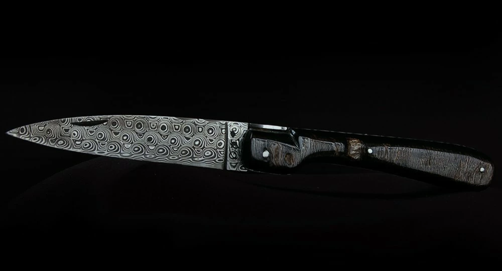 Couteau fait main : La Vendetta Zuria en plein manche de Buffle et lame Damas