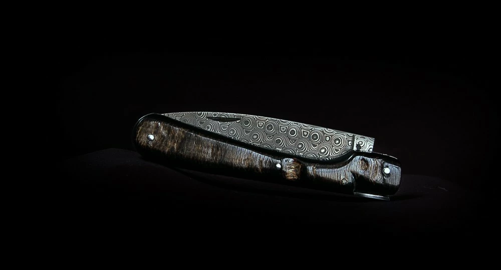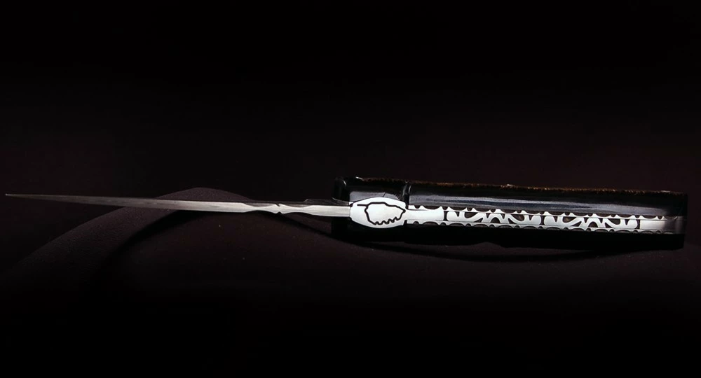 La Vendetta Zuria possède un système à cran forcé et un ressort à butée de lame empêche que celle-ci ne frappe le fond du couteau à la fermeture. Son ressort massif est forgé et poli à l’intérieur, la Corse est gravée sur le dessus, et elle est déclinée dans des matières nobles et des aciers de qualité.