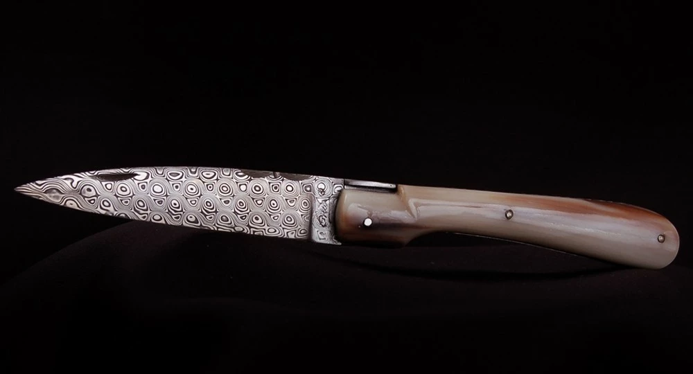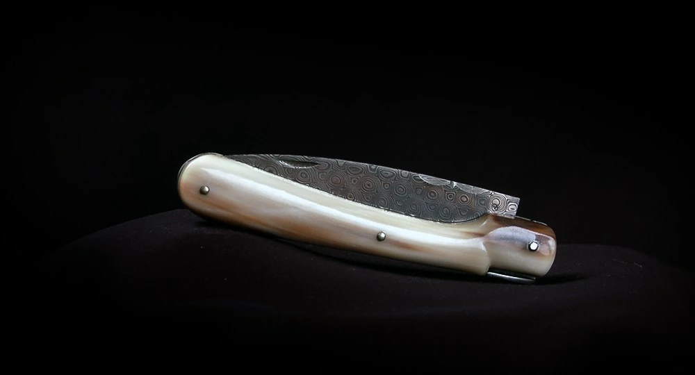 Couteau fait main : La Vendetta Zuria en plein manche de pointe de Corne et lame Damas