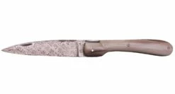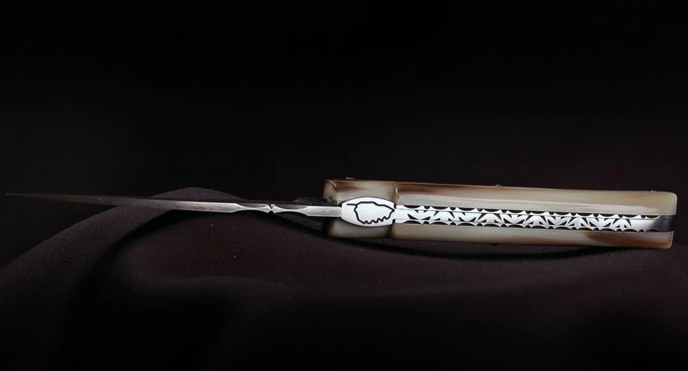 La Vendetta Zuria possède un système à cran forcé et un ressort à butée de lame empêche que celle-ci ne frappe le fond du couteau à la fermeture. Son ressort massif est forgé et poli à l’intérieur, la Corse est gravée sur le dessus, et elle est déclinée dans des matières nobles et des aciers de qualité.