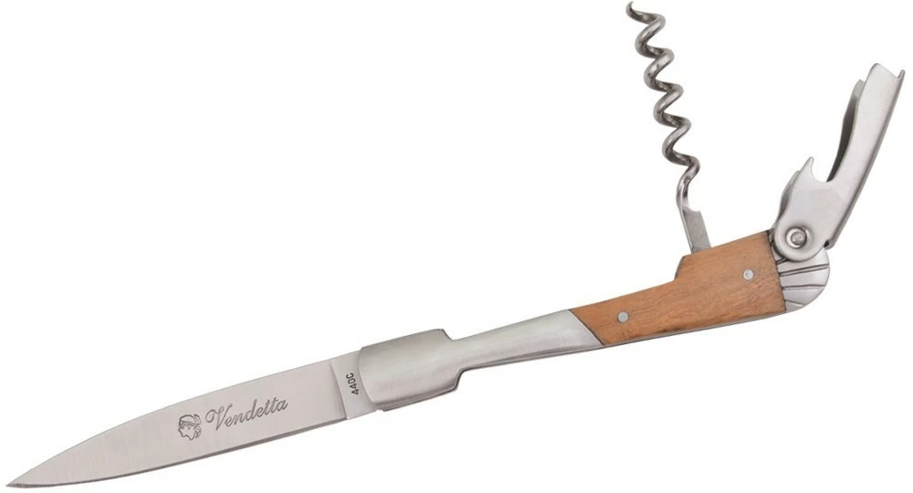 Couteau Vendetta avec Tire-bouchon et décapsuleur en Olivier