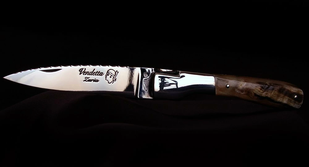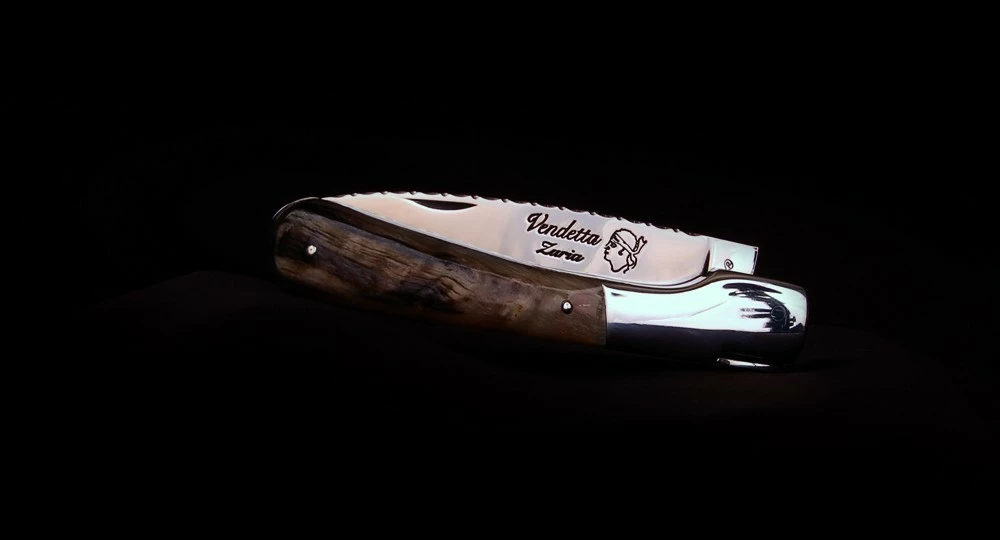 Cette Vendetta imaginée et designée par nos soins en Corse, est fabriquée à la main. Les couteliers Zuria de Bonifacio et Fontenille Pataud ont mis en commun leur talent et leur savoir-faire pour recréer une Vendetta Corse digne de ce nom.