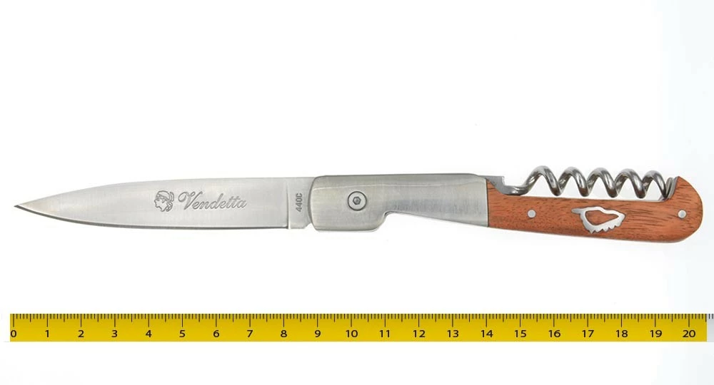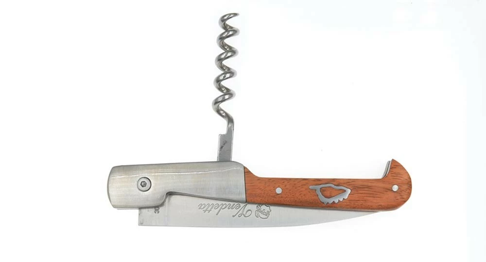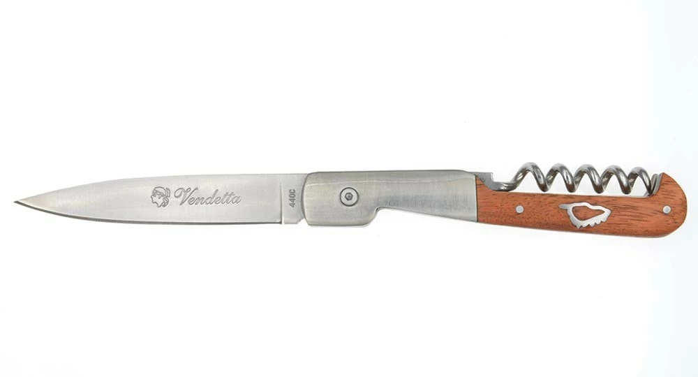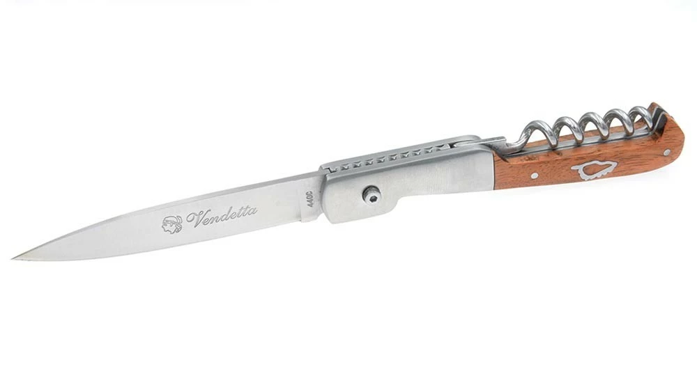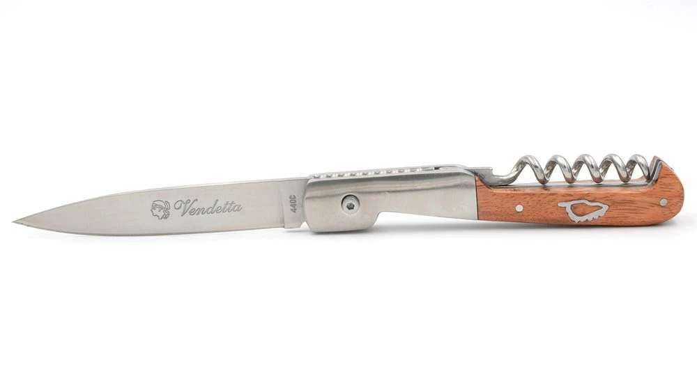 Compact et stylé avec son manche en bois d’Arbousier ornĂ© de La Corse, vous emporterez votre Vendetta tire-bouchon partout avec vous !