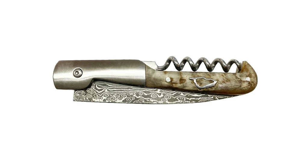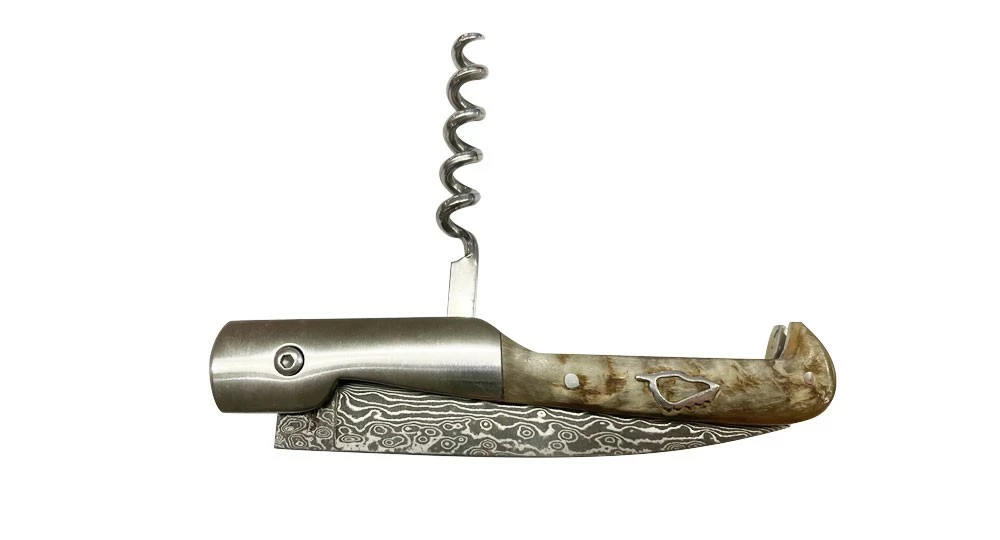 Couteau Vendetta Tire-bouchon : Corne de bélier, lame Damas et Push-button