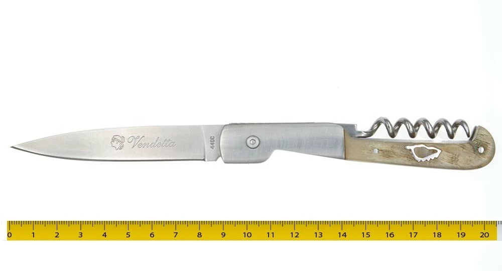 Compact et stylé avec son manche en véritable Corne de bélier orné de La Corse, vous emporterez votre Vendetta tire-bouchon partout avec vous !