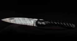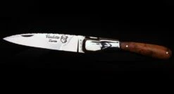 La Vendetta Zuria possède un système à cran forcé et un ressort à butée de lame empêche que celle-ci ne frappe le fond du couteau à la fermeture. Son ressort massif est forgé et poli à l’intérieur et, la Corse est gravée sur le dessus. Ce modèle est équipé d’un tire-bouchon à 5 spires qui se plie dans le manche.